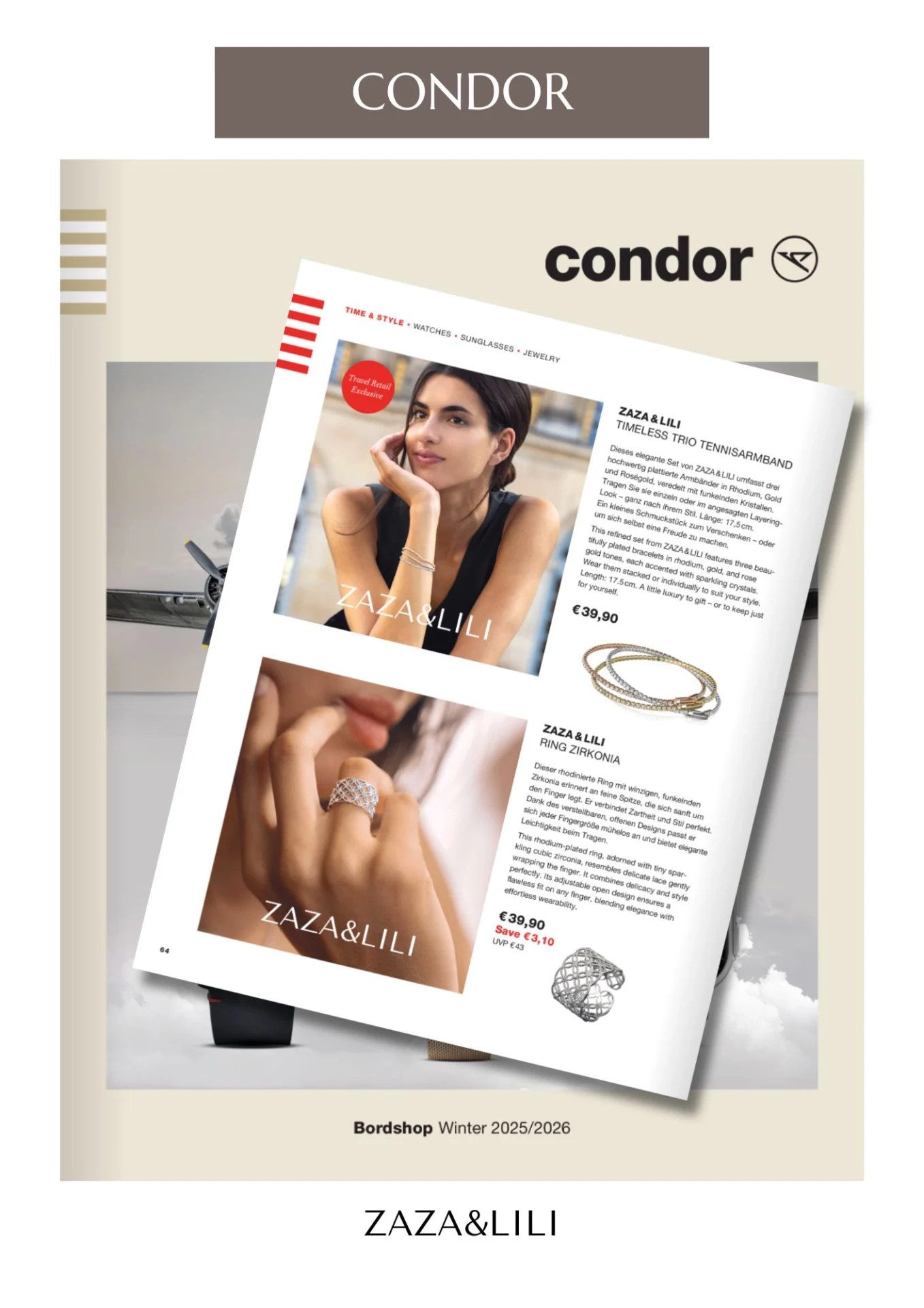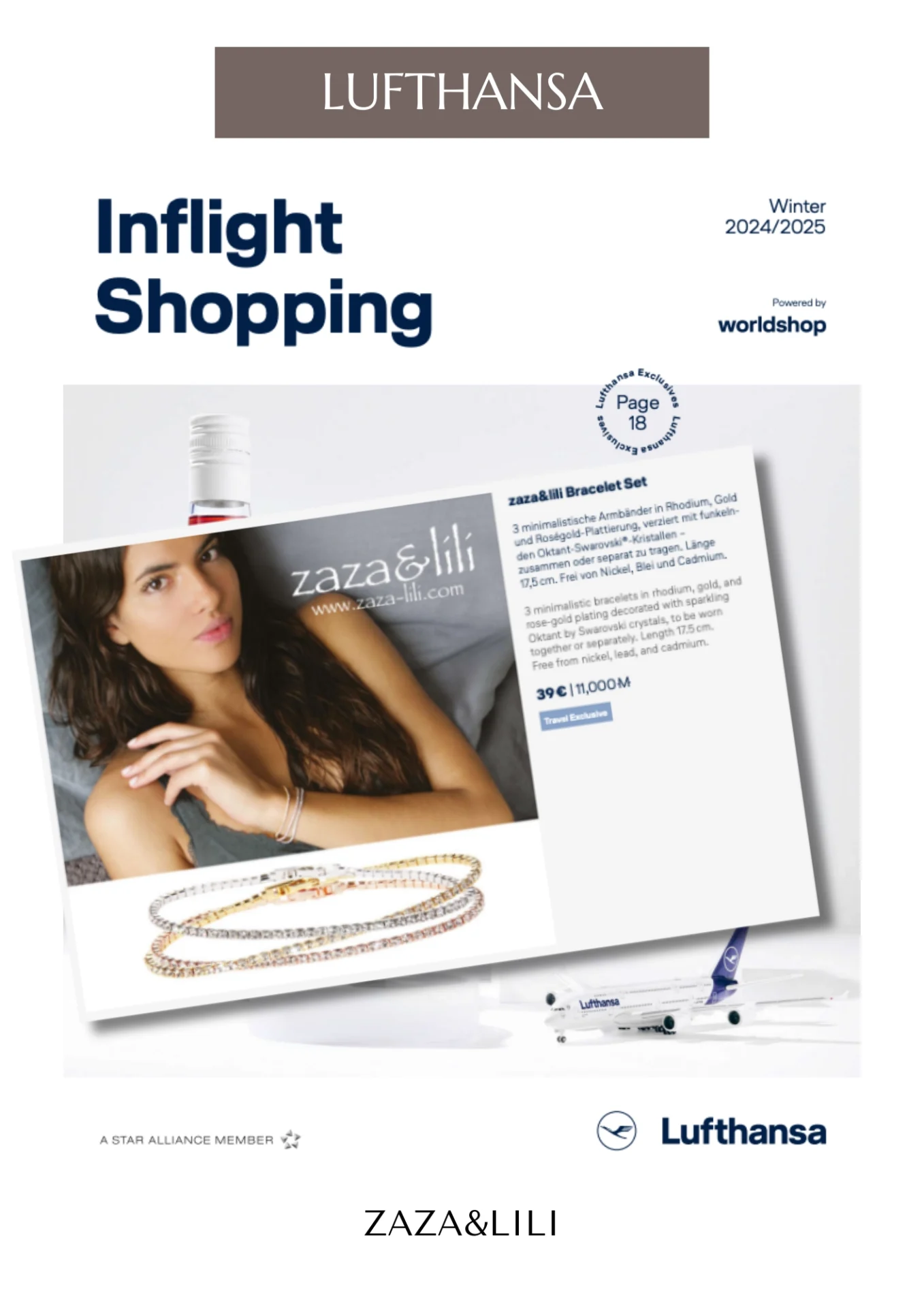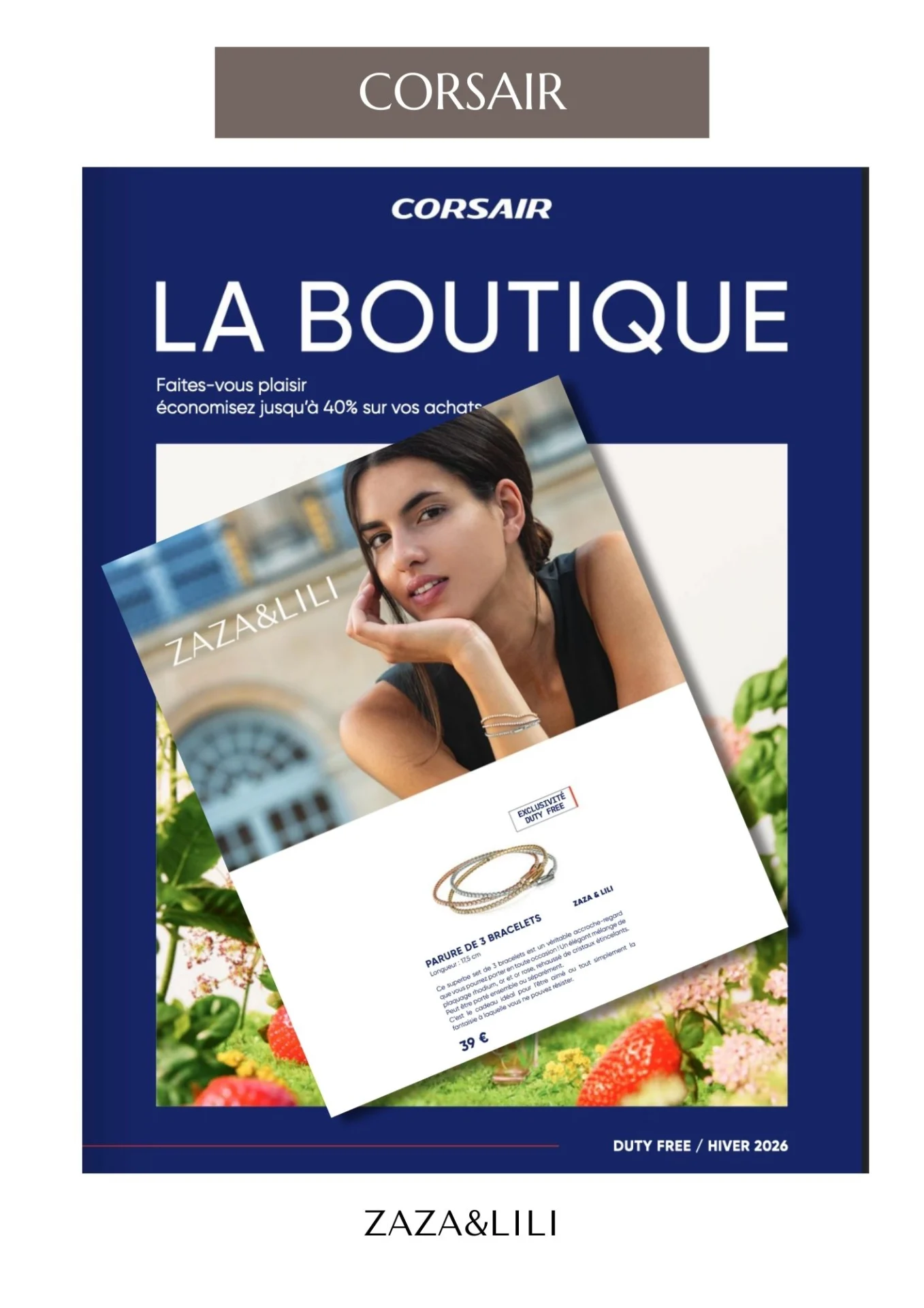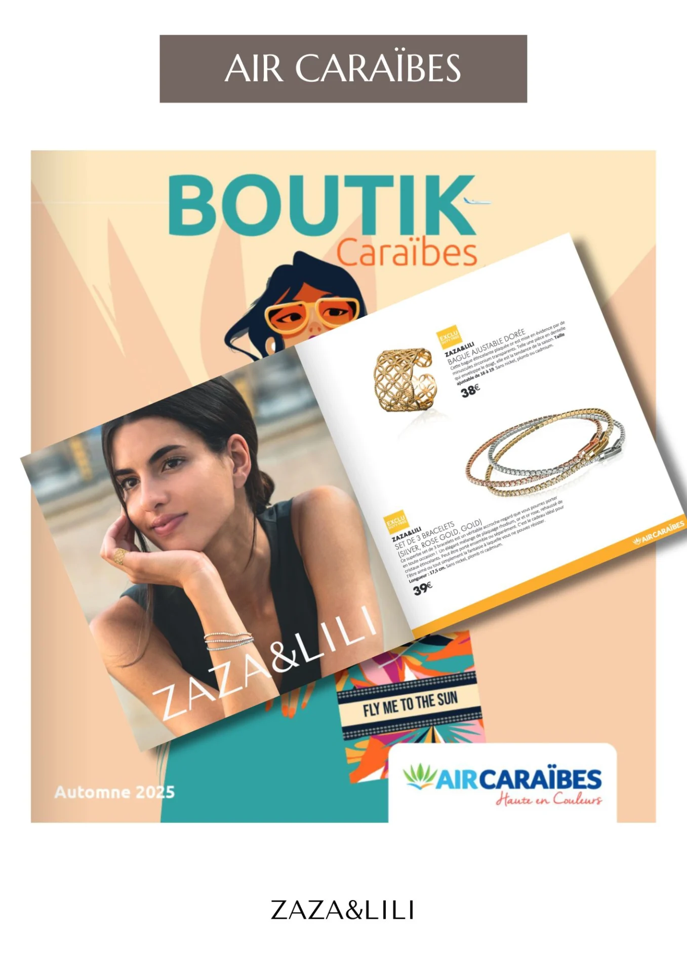 Depuis plus de 10 ans, ZAZA&LILI accompagne les voyageuses et voyageurs du monde entier. Spécialisée dans le travel retail, notre marque est présente à bord de plusieurs compagnies aériennes internationales, offrant des bijoux à la fois pratiques à emporter et élégants à offrir, même à 30 000 pieds d’altitude.
