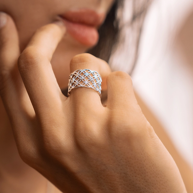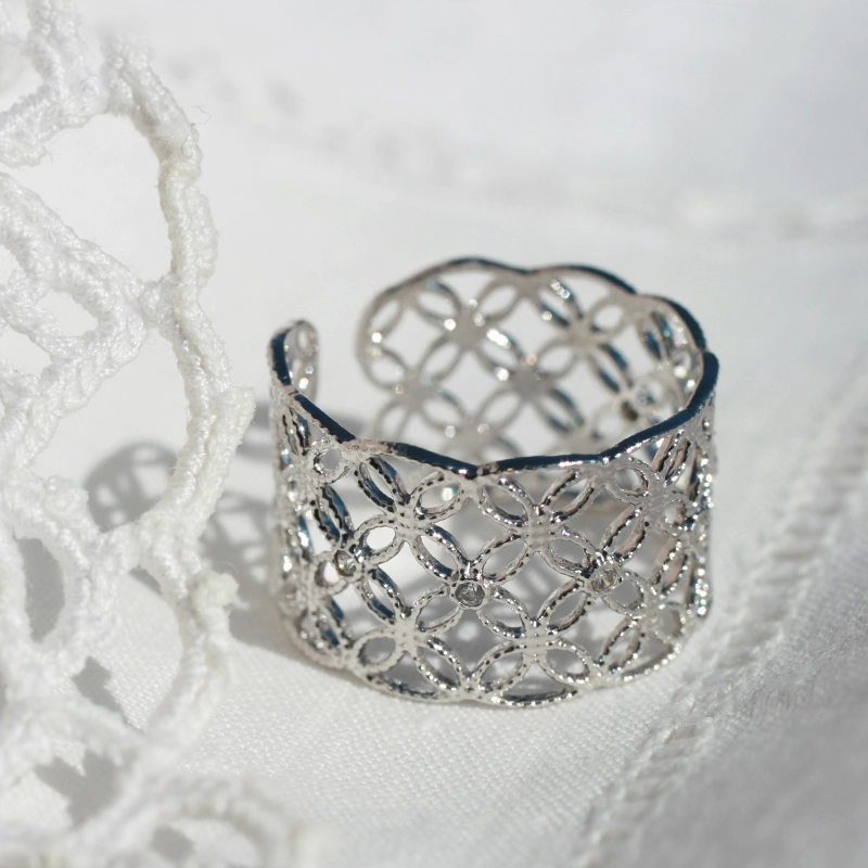 Taille ajustable de 50 à 56, s’adaptant élégamment à différents doigts pour un port confortable et modulable.