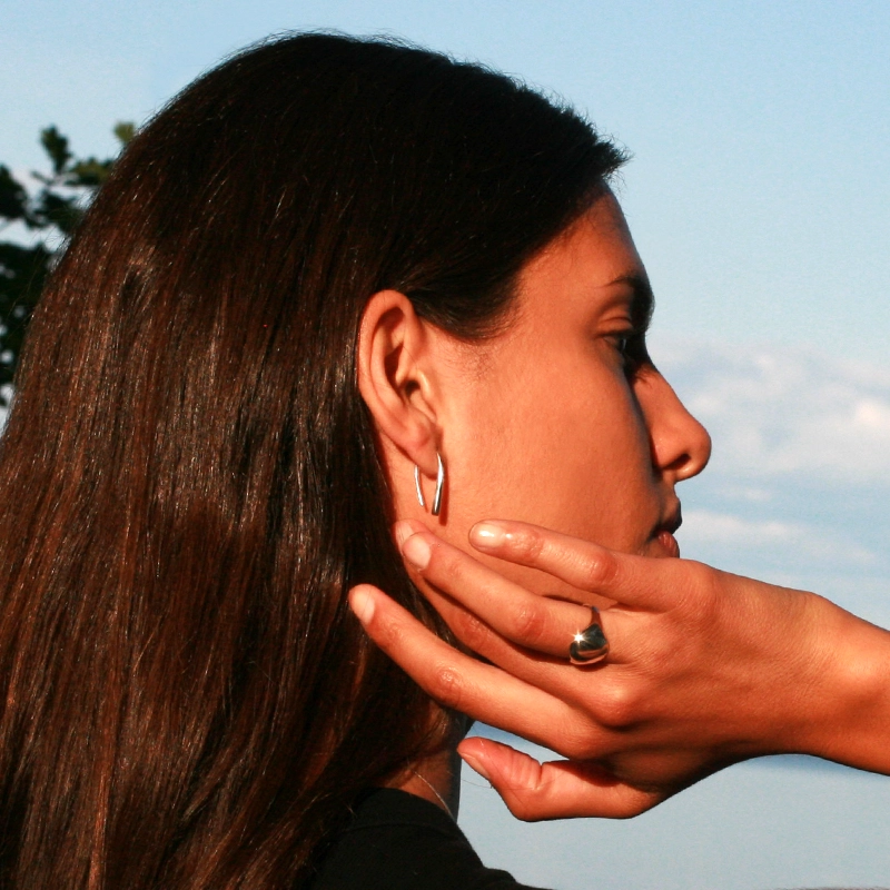 Des boucles d’oreilles élégantes et discrètes, rappelant des gouttelettes ondulantes qui captent la lumière avec subtilité. Leur design minimaliste et raffiné apporte une touche délicate et contemporaine à toutes vos tenues.