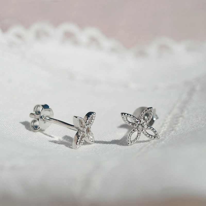 Boucles d’oreilles en forme de feuille de dentelle, délicates et raffinées, parfaites pour apporter une touche féminine et élégante. Elles s’associent harmonieusement avec tous les bijoux de la ligne Enlace.