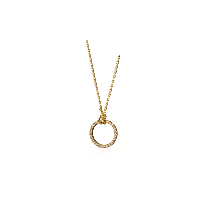 Un pendentif délicat qui confère une allure minimaliste à ce collier. La chaîne peut être portée avec un nœud élégant ou simplement passée à travers le pendentif pour un style personnalisé. Des zircons cubiques étincelants apportent une touche lumineuse et raffinée à ce bijou contemporain.